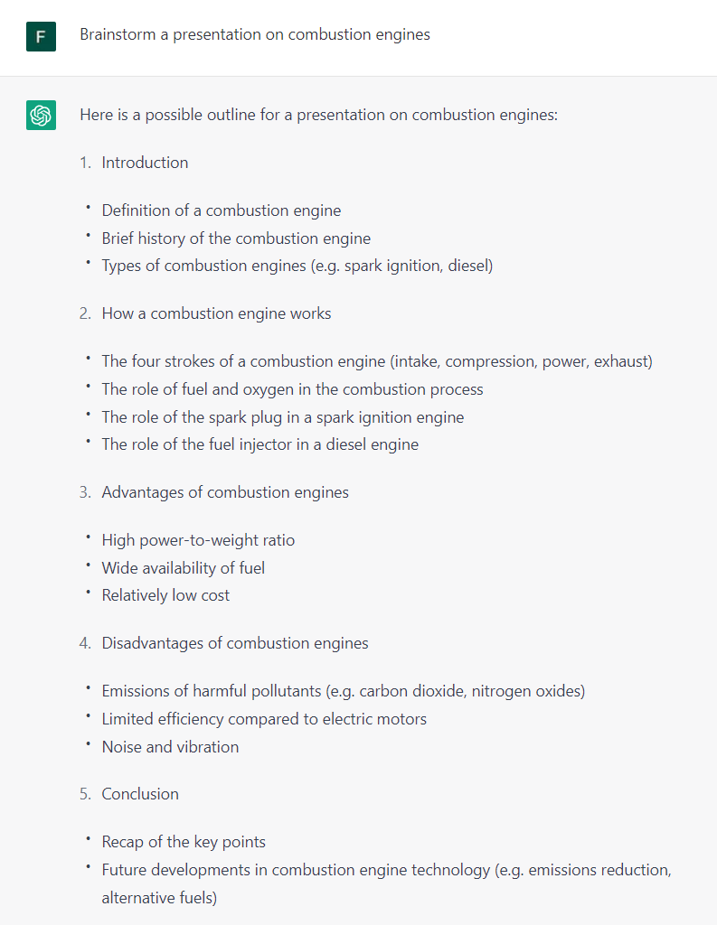You can use ChatGPT to help you brainstorm ideas. You can give it a topic and ask it to generate ideas for you. It will then generate a list of ideas that you can use in your work. It’s possible to ask to elaborate on certain key points and ChatGPT will talk a little more about them. This is awesome to use when you are stuck on a project or assignment and need some inspiration.