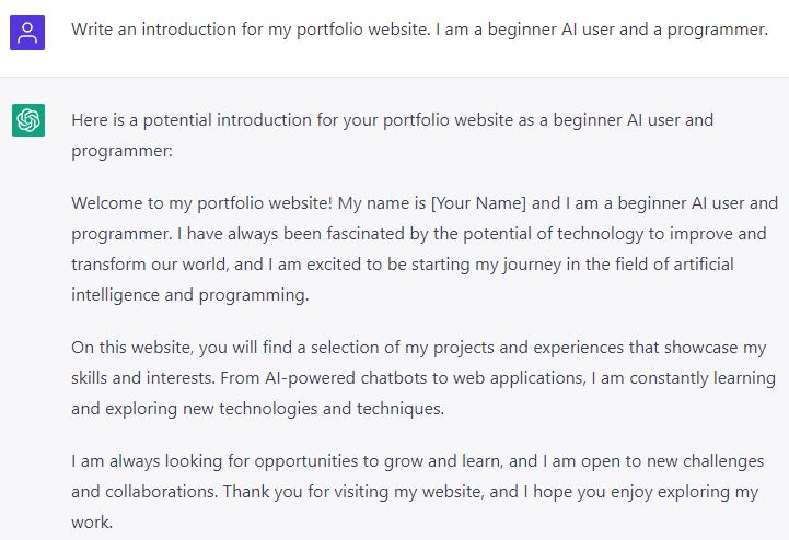 And it’s prepared! I’m in awe! While I don’t advise using ChatGPT to build your entire portfolio website, it can undoubtedly offer some helpful advice and help you produce better work. or at the very least, make it quicker and easier.